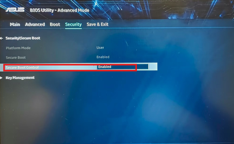 2.顶部菜单选「Security」→ 找到「Secure Boot」