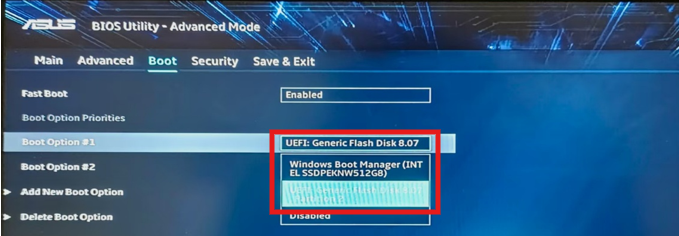 1.重启继续狂按 Del → F7 →「Boot」→「Boot Option #1」→ 选 U 盘(带 Ventoy 字样)。