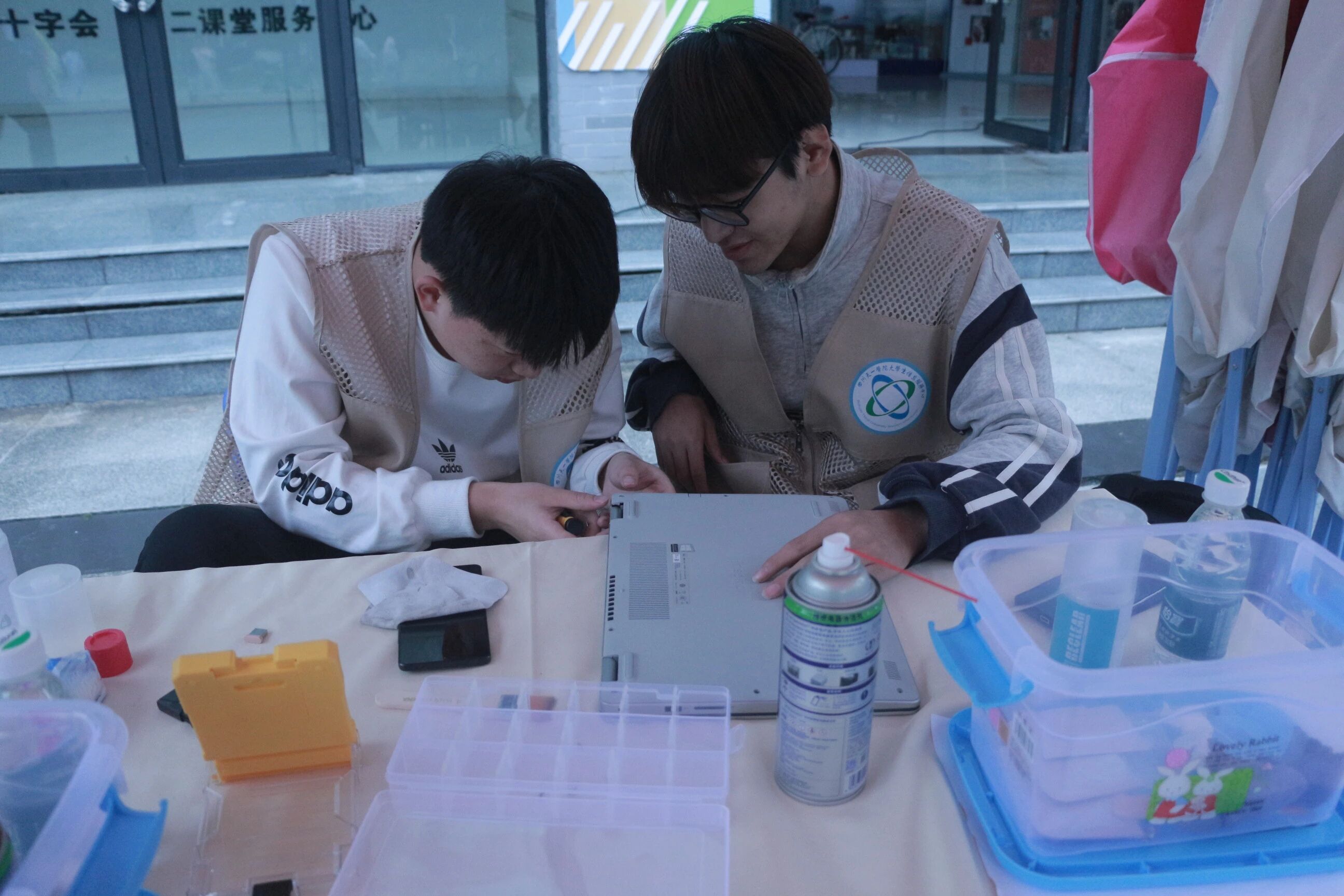 活动前期,大学生信息服务中心聚焦师生实际需求,优化服务流程、明确人员分工,开展技术专项培训,配齐维修工具与备用物资,以充分筹备确保服务质效。活动期间,服务点按固定时段开放,技术人员高效处理电脑卡顿、散热不良等常见问题,传授保养技巧,同时为教学楼公共设备开展全面清灰,全方位保障教学与学习需求。